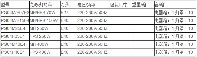 工矿灯PG04技术参数: