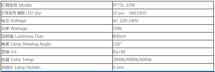 PF75L-10W产品规格: