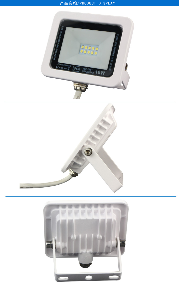产品特点: 1.钢化玻璃面板,高强度保护光源,透光率达95%; 2.压铸铝一次成型,防尘防水,防护等级IP65; 3.灯体外表烤漆处理,不易刮花 适用范围: 适用于户外广告牌、体育馆、建筑外墙、绿化、庭院、公园等照明场所